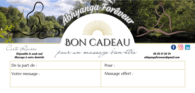 Copyright © 2025Abhyanga Forêveur|Politique de confidentialité| CGUV | FAQ | Calendrier scolaire | Plan du site |Demande EVG|Demande Entreprise|Demande Anniversaire