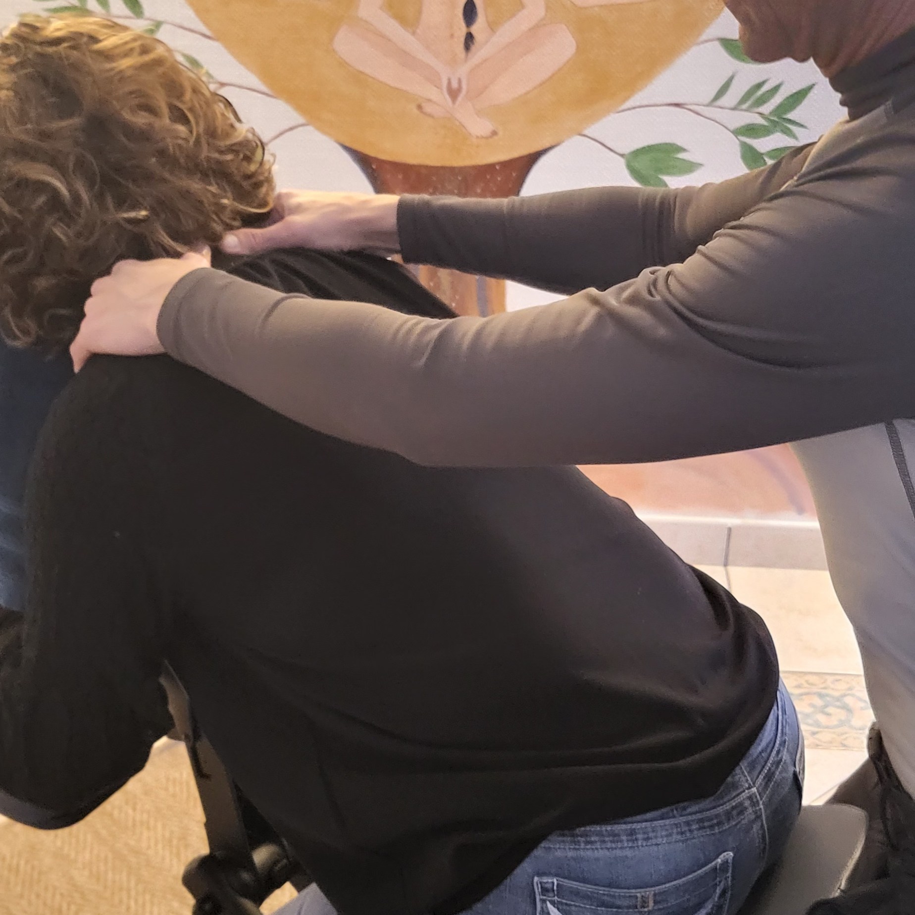 massage Bol kansu, massage chinois des Bols Tibétains et massage Amma assis.